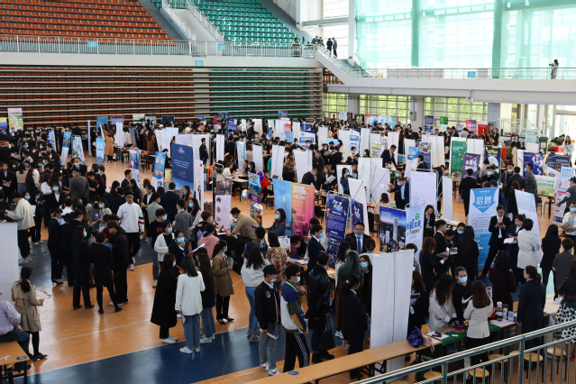 本网讯(酒店管理学院 王志飞)4月15日下午,2021年酒店管理类企业专场招聘会在学院体育馆顺利举行,来自全国各地150家知名品牌酒店参会,为酒店管理专业800余名应届毕业生提供近5000个就业岗位。