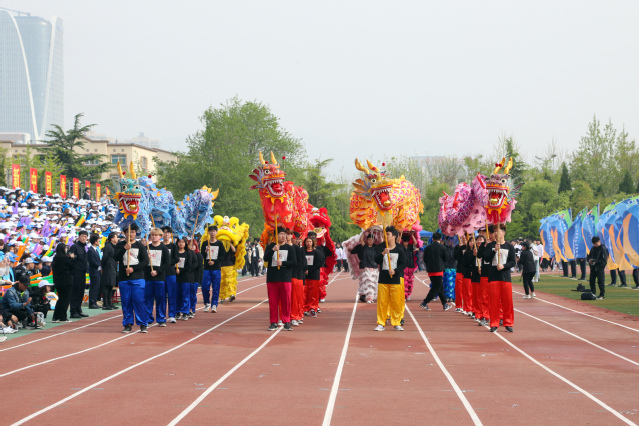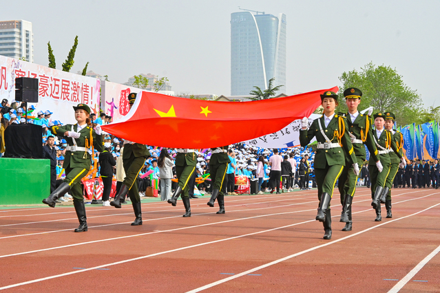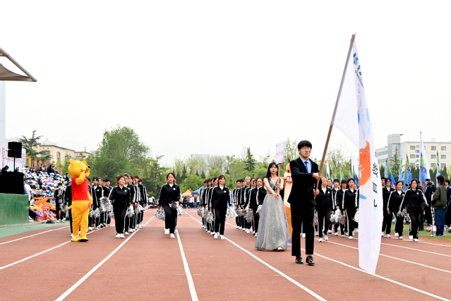 开幕式上,伴随着激昂的《运动员进行曲》,各方队迈着整齐矫健的步伐、喊着铿锵有力的口号,精神抖擞、意气昂扬地走过主席台,接受学院领导和全院师生的检阅。在庄严的国歌声中,全体人员起立,鲜艳的五星红旗在体育场冉冉升起。