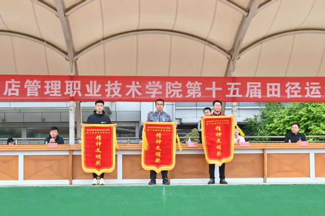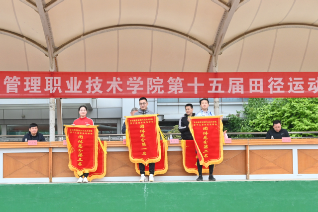 闭幕式上,运动会总裁判长夏飞宣布了竞赛团体总分成绩,工商管理学院、酒店管理学院、酒店工程学院获得学生组团体总分前三名,基础教学部、酒店管理学院、酒店工程学院获得教工组团体总分前三名;姜玲玲宣布了获得精神文明奖的单位名单,酒店工程学院、会计学院、信息工程技术学院获得学生组精神文明奖,酒店管理学院、工商管理学院获得教工组精神文明奖。学院领导向获得运动会竞赛团体总分前三名和精神文明奖的单位颁发了锦旗。