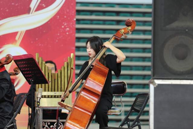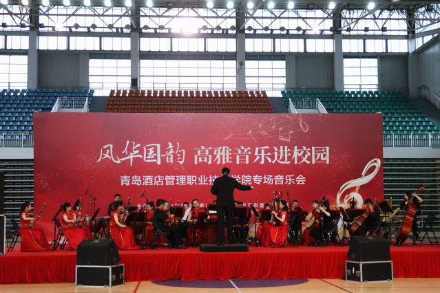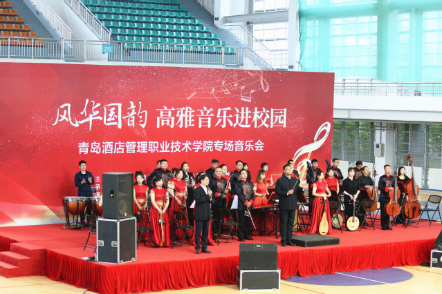 本网讯(党委宣传统战部 团委)5月26日下午,由中共青岛市委宣传部、中共青岛市委教育工委主办的青岛市高雅音乐进校园——青岛市歌舞剧院民族乐团“风华国韵”民族音乐会在学院体育馆举行,1200余名师生共同欣赏了这场音乐盛宴。