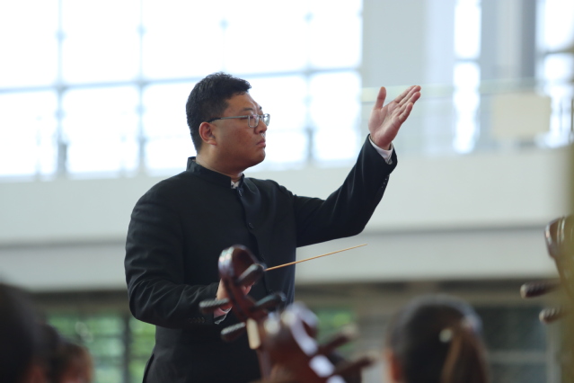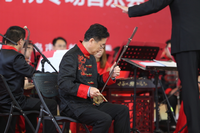音乐会在民族管弦乐合奏《北京喜讯到边寨》的欢快音乐中拉开序幕。演奏家们演奏了《瑶族舞曲》《二泉映月》《赛马》等大众耳熟能详的民族旋律,带来了欢快悠扬、热烈活泼的唢呐对奏《正月十五闹雪灯》等精彩曲目。音乐会中不仅有传统的民乐演奏,还融入了歌手及新民乐的演出形式,侧重观赏性、普及性与艺术性。其中,现代新民乐《十面埋伏》《彝族舞曲》,让在座师生对不同民族音乐的魅力有了全新的感受;《南湖的船,党的摇篮》《不忘初心》用民族的声音唱响党的百年历史,讴歌党的丰功伟绩,将音乐会推上了高潮。音乐会尾声,一曲《我的祖国》音韵袅袅、荡气回肠,表达了对祖国最深沉的爱与祝福。在热烈的掌声和欢呼声中,本场民族音乐会圆满落幕。演出过程中,乐团相关负责人现场介绍乐器、讲解曲目,面向师生普及了民族音乐知识。