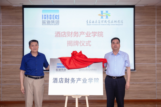 本网讯(会计学院)为提升财经类专业群人才培养质量和特色,服务学院“双高计划”建设,6月25日,学院与山东蓝海酒店集团共建酒店财务产业学院签约暨揭牌仪式在行政楼四楼会议室举行。山东蓝海酒店集团副总裁、蓝海酒店管理公司董事长徐帅德,学院院长姜玉鹏参加仪式。仪式由学院副院长张宗国主持。
