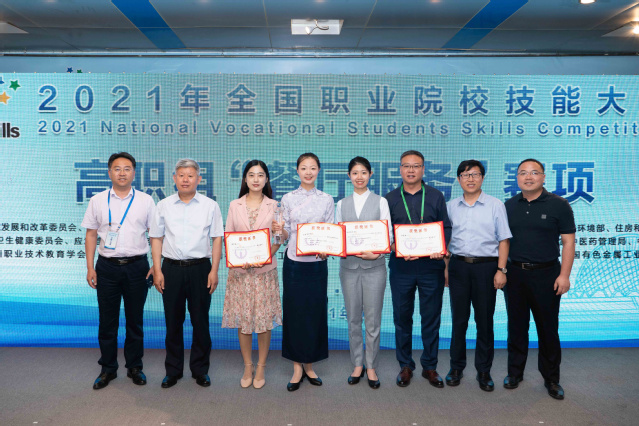 本网讯(酒店管理学院 王翔)6月20日至23日,全国职业院校技能大赛(高职组)餐厅服务赛项在学院举办,学院代表队代表山东省参赛,最终以总分第一名的优异成绩获得一等奖。其中,王小爽、张楚悦两名同学分别参加中、西餐模块比赛,获得团体一等奖,郭芊孜、杜彦超两位老师荣获“优秀指导教师”。