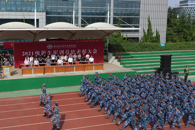 本网讯(党委宣传统战部 周晓莉)9月16日上午,学院在体育场举行2021级新生军训总结表彰大会。