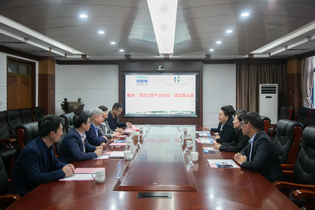 本网讯(会计学院)10月18日下午,学院与蓝海集团在行政楼二楼会议室召开座谈会,就进一步加强校企合作,共同推进“酒店财务产业学院”建设进行深入探讨。