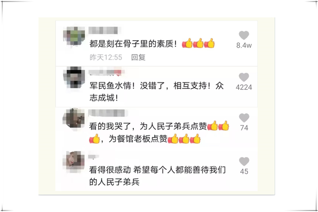 视频发出后,网友纷纷点赞道:“这就是刻在骨子里的素质”、“军民鱼水情!互相支持!”。大家深深为人民子弟兵的行为、也为这份军民鱼水情而感动。