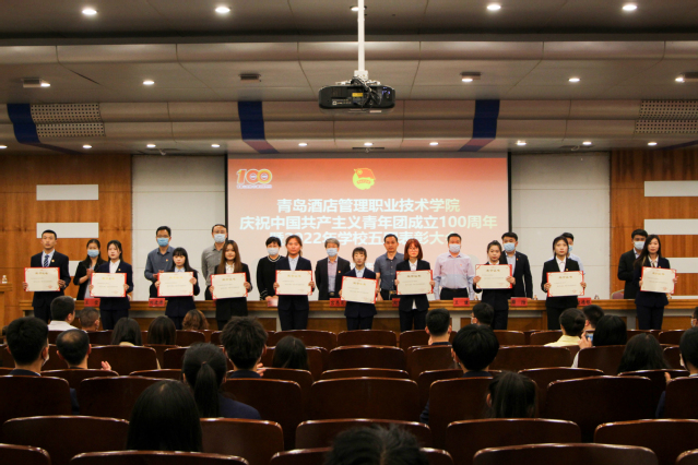 酒店管理学院党总支书记徐莉宣读了表彰2021—2022学年学校共青团先进集体、先进个人的决定,授予2020级酒店管理专业专本贯通01班团支部等19个团支部“红旗团支部”、2020级酒店管理专业金钥匙班团支部等40个团支部“先进团支部”、崔世延等62名同学“优秀共青团干部”、刘永旺等246名同学“优秀共青团员”荣誉称号,与会领导为先进集体和个人代表进行颁奖。