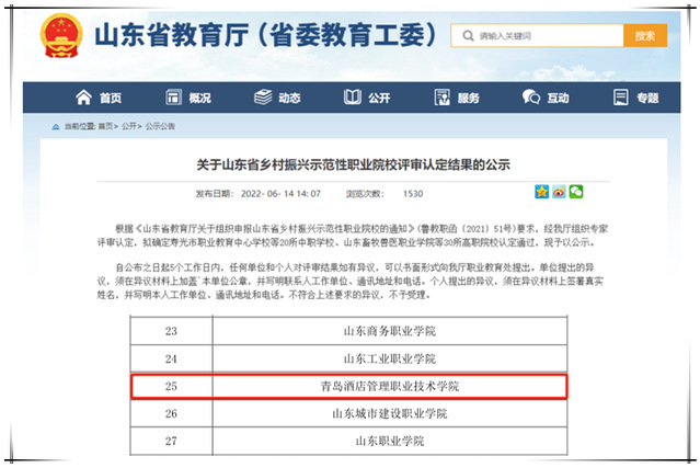 本网讯(教务处 庞阳)日前,山东省教育厅发布山东省乡村振兴示范性职业院校评审认定结果,我校成功入选,标志着学校服务乡村振兴得到社会和主管部门的充分认可。