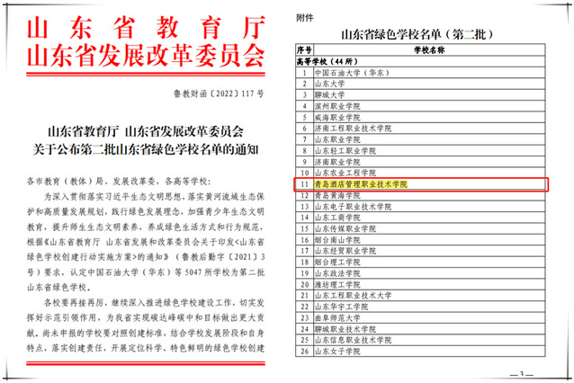 本网讯(总务处 孙延寿)近日,山东省教育厅、山东省发展改革委员会公布了第二批山东省绿色学校名单,我校成功入选。