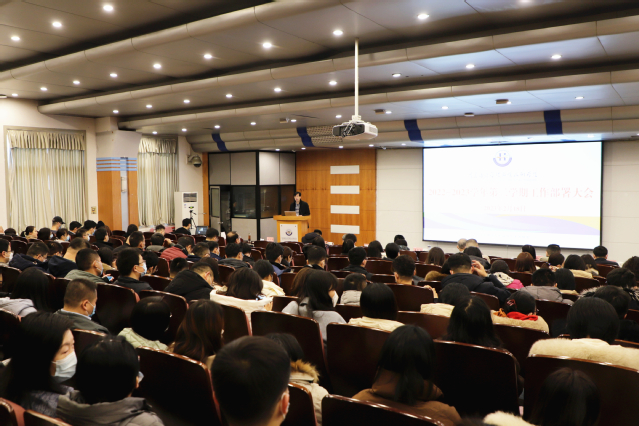 本网讯(党委宣传统战部)2月18日,学校在学术报告厅召开新学期教职工大会,深入学习贯彻党的二十大精神,传达全国、全省教育工作会议精神,总结2022年工作,安排部署2023年工作任务。全校教职工参加会议。