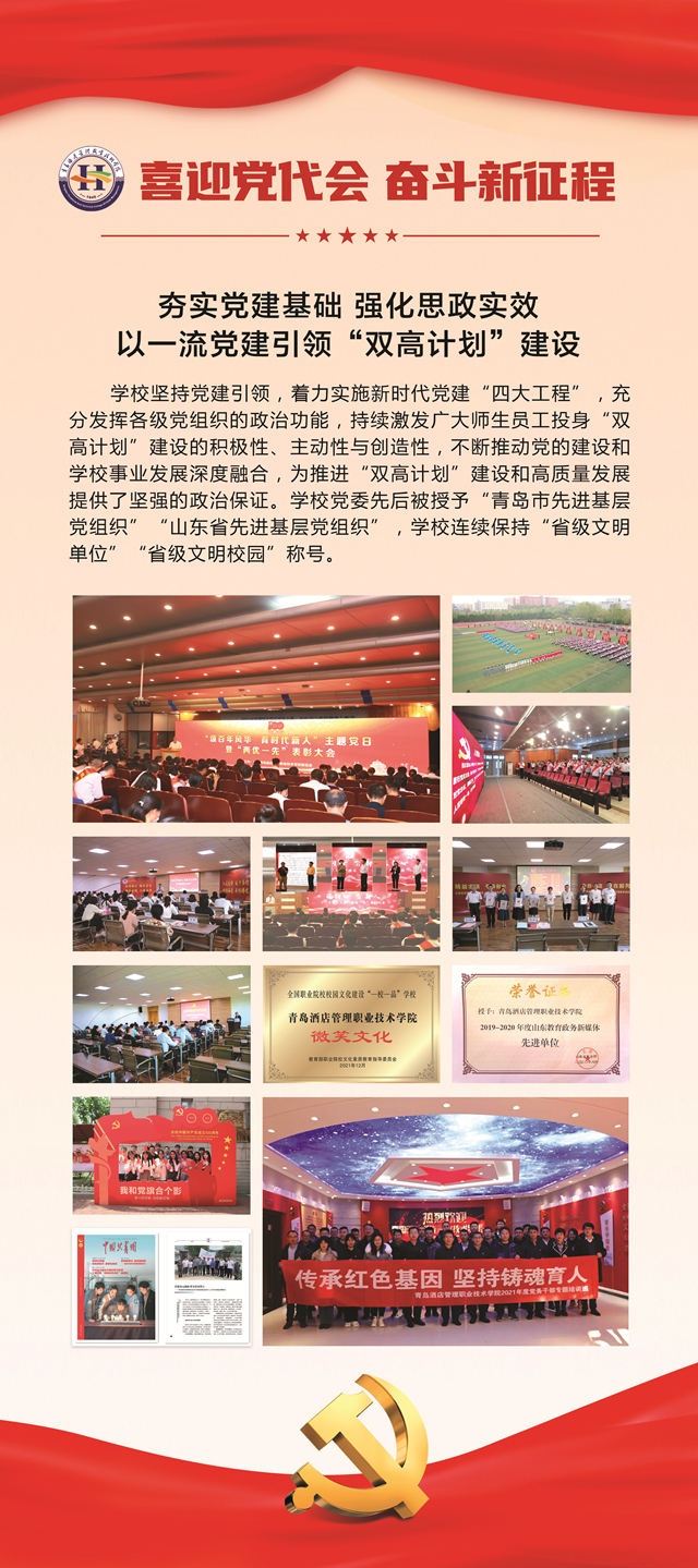 本网讯(学校第二次党代会秘书宣传组)中国共产党青岛酒店管理职业技术学院第二次代表大会即将召开。这是我校政治生活中的大事,肩负着全面加强党的建设、系统谋划学校发展蓝图的重要使命。