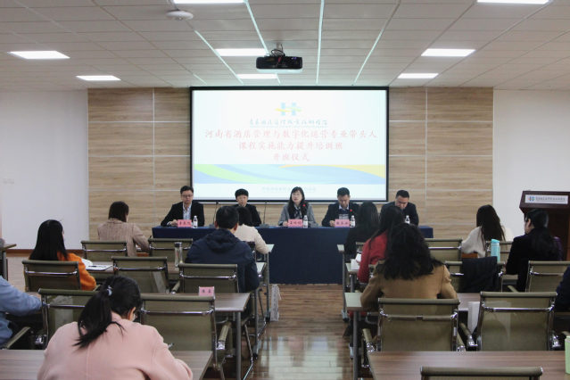 本网讯(继续教育学院 酒店管理学院)3月7日,河南省2022年度“酒店管理与数字化运营专业带头人课程实施能力提升”国培项目在学校行政楼四楼会议室正式开班,来自河南省高职学校酒店管理与数字化运营专业的30名专业带头人将接受为期4个周的培训。