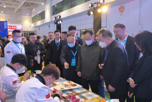 本网讯(烹饪学院 赵捷)3月15日,由省农业农村厅、省市场监管局和省畜牧兽医局等指导,山东预制菜产业联盟主办的中国国际预制菜产业(山东)交易博览会在山东济南国际会展中心开幕。鲁商集团党委书记、董事长王绪超莅临我校展位视察指导工作,学校党委书记李达陪同。
