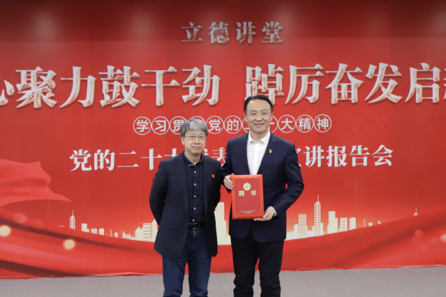学校副院长宫恩龙参加报告会并为郭锐颁发学校“特聘思政导师(校外辅导员)”聘书,报告会以立德讲堂形式进行。