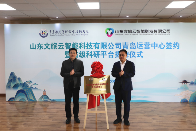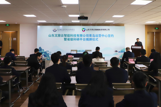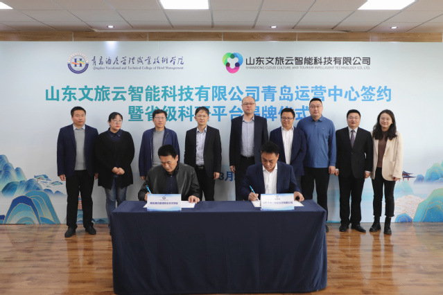 2020年以来,学校先后与青岛市文化和旅游局、山东文旅云智能科技有限公司开展合作,申报黄河流域智慧旅游协同创新中心和山东省高等学校旅游大数据新技术研发中心两个省级科研平台。山东文旅云智能科技有限公司青岛运营中心落户我校后,将实现校企共建“校中厂”,把“云游齐鲁”“云游青岛”的工作场景引入到教学过程各环节,成为学生真实学习、实践和实训的校内实践中心。
