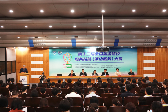 本网讯(党委宣传统战部 周晓莉)5月11日,第十三届全国旅游院校服务技能(饭店服务)大赛在学校学术报告厅开赛。本次大赛由文化和旅游部市场管理司、中国旅游协会指导,中国旅游协会旅游教育分会主办,我校承办,旨在深入学习贯彻党的二十大精神,培养技能型应用型人才,促进教育高质量发展,提升旅游教育支撑旅游业发展的力度。