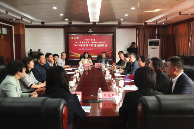 本网讯(工会 酒店管理学院)10月15日,由中国财贸轻纺烟草工会、全国总工会宣传教育部、中国饭店协会、山东省总工会主办的“中国梦·劳动美——凝心铸魂跟党走 团结奋斗新征程”2023年劳模工匠进校园活动在我校举行。