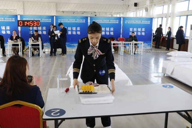 竞赛过程中,参赛选手理论答题全神贯注、客舱服务技能娴熟、急救处置沉着冷静,充分展示了我省邮轮运营服务人才的职业技能和精神面貌,是山东省邮轮运营服务行业的一次盛会。
