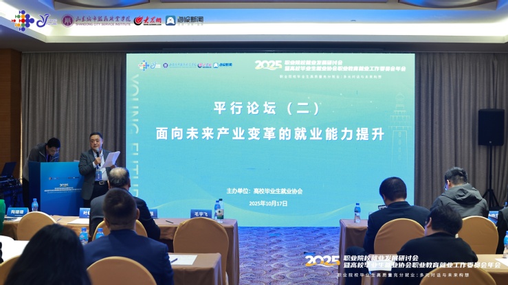 本网讯(招生就业办公室 刘卿文)10月16日至18日,由高校毕业生就业协会指导、高校毕业生就业协会职业教育就业工作委员会主办的职业院校就业发展研讨会暨2025年高校毕业生就业协会职业教育就业工作委员会年会在烟台召开,学校党委书记刁洪斌受邀参加会议并主持平行论坛。