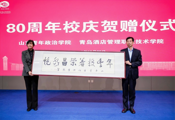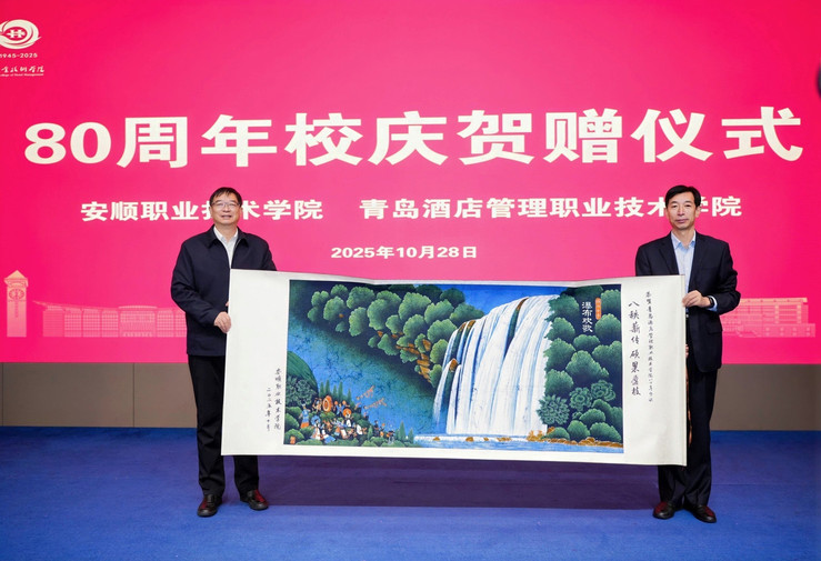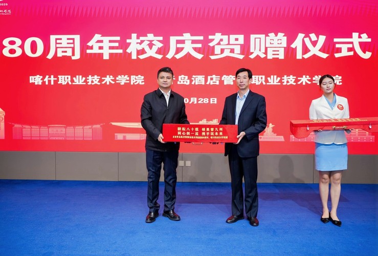 在兄弟院校为学校80周年校庆贺赠仪式中,山东青年政治学院现代服务管理学院党委书记赵新燕,安顺职业技术学院党委书记许志,喀什职业技术学院党委副书记、校长亚森·艾力,黔南民族职业技术学院副校长段班权分别代表兄弟院校向学校赠送校庆贺礼,韩西清代表学校接收校庆贺礼。饱含深情的校庆贺礼,充分体现了职业教育大家庭守望相助、携手共进的浓厚情谊。