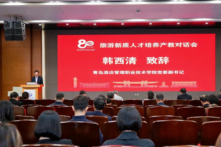 本网讯(文旅学院 韩晓)金秋十月,叠翠鎏金。10月28日上午,在庆祝建校80周年之际,学校特邀请学界及业界知名专家、企业高级管理人员开展旅游新质人才培养产教对话会,就推动旅游教育与产业深度融合、提升旅游新质人才的培养质量等议题进行了广泛而深入的讨论交流。学校党委副书记韩西清出席活动并致辞,文旅学院院长石媚山主持会议。