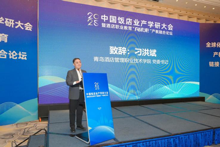 开幕式上,学校党委书记刁洪斌代表主办方致欢迎辞。他指出,学校作为全国第一所独立设置的酒店管理职业技术学院,始终坚持“聚焦酒店业办专业”的办学思路,围绕酒店业产业链需求,提出了建设国内一流、国际知名的酒店业全业态专业链的目标,构建了以住宿餐饮业智能化、数字化转型升级为主线的专业群建设体系。面对“全球化深化”与“数智化转型”的时代浪潮,他强调,职业教育必须深度拥抱产教融合,这既是破解人才供给与产业需求结构性难题的关键,也是为行业注入持续活力的源泉。基于此,学校多年来始终将“产教融合”作为办学核心战略,走出了一条“校行企协同、产学研一体”的特色发展之路。学校不仅建成了配备AI客房控制系统、虚拟仿真酒店管理平台等前沿设施的“海斯曼数字酒店”,而且在课堂中引入企业真实案例与数智化技术,培养学生的数字化思维与创新能力。此外,学校还在中国饭店协会指导下,牵头成立了全国饭店行业、全国现代住宿业产教融合共同体,不断推动产教融合从“单点合作”向“系统协同”升级。