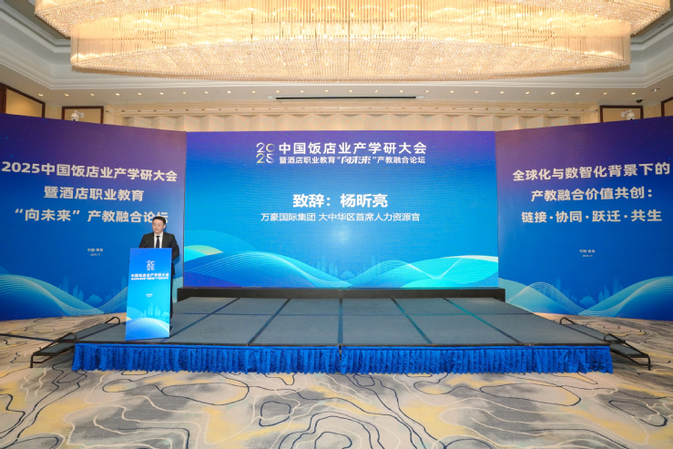 本网讯(酒店管理学院)11月6日,由中国饭店协会指导,我校与上海姜根企业管理有限公司(万豪国际集团)联合主办的2025中国饭店业产学研大会暨酒店职业教育“向未来”产教融合论坛在青岛隆重开幕。