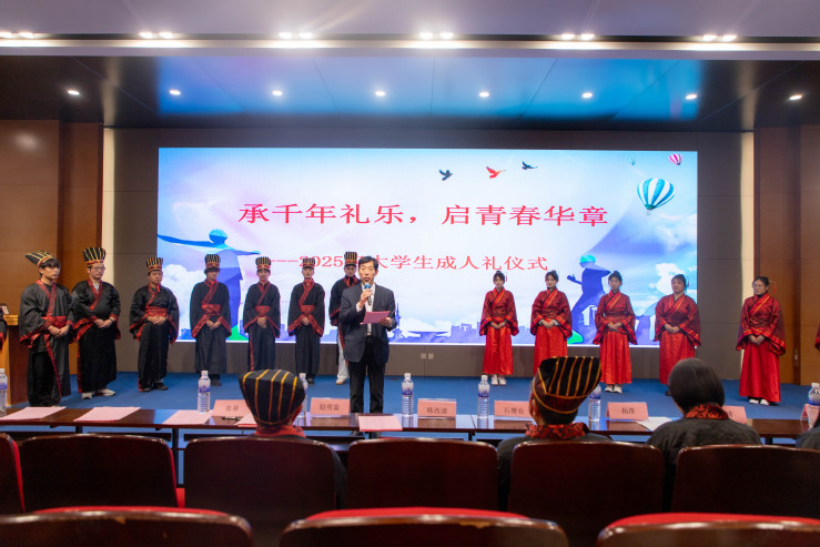 本网讯(基础教学部 张萌)11月20日,学校2025级学生中华传统成人礼仪式在学术报告厅举行,学子们身着汉服,在古韵雅乐中完成了属于他们的青春献礼。校长韩西清出席活动并聆训。