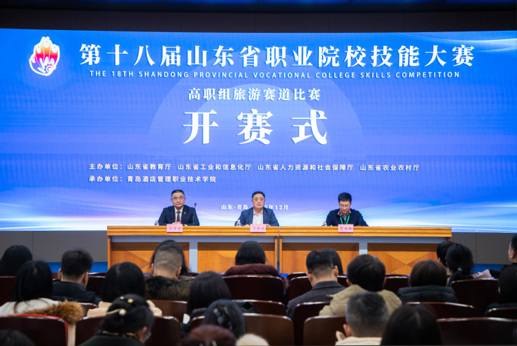 本网讯(酒店管理学院)12月17日下午,第十八届山东省职业院校技能大赛高职组旅游赛道比赛在学校开赛,本次比赛由山东省教育厅、山东省工业和信息化厅、山东省人力资源和社会保障厅、山东省农业农村厅联合主办,我校承办。