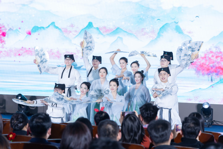 文旅学院的舞蹈表演《幸福文旅 开门大吉》创意十足,舞者身着文旅特色的服饰,用舒展优美的舞姿诠释着“幸福文旅”的主题,展现了文旅行业的活力与魅力,传递着对新年的美好祝愿。