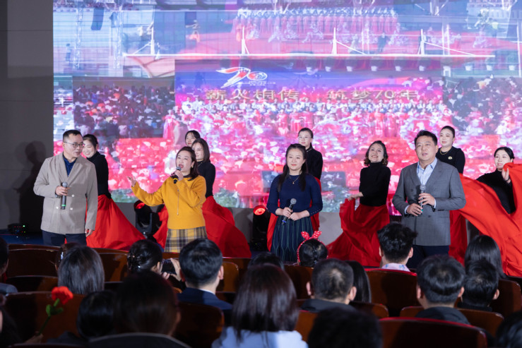 入职20年人员代表带来的歌舞表演《二十年后我们再相会》温情满满。这些陪伴学校走过20载春秋的员工们,用深情的歌声、真挚的情感,回顾了与学校共同成长的点点滴滴,表达了对学校的深厚情谊与美好祝福。熟悉的旋律、动人的歌声,引发了全场观众的强烈共鸣。最后,晚会在全体演职人员共同演唱的《难忘今宵》中落下帷幕。