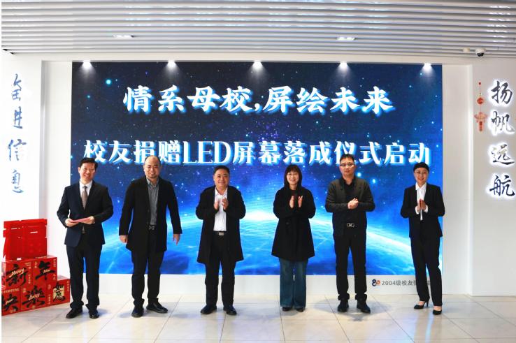 此次揭幕投入使用的LED显示屏面积约20平方米,采用高密度像素配置与广色域显示技术,具备高亮度、高对比度和宽视角的显著优势。屏幕搭载于信息楼大厅,不仅是学院信息发布、学术成果展示、文化活动直播的现代化视觉窗口,更承载着深厚的情谊与期许,为在校学子拓开了一扇眺望行业前沿、激发创新思维的视窗,生动诠释了“情系母校 屏绘未来”的丰富内涵。