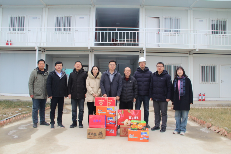 随后,姜玲玲、于宏刚一行赶赴学校蓝谷校区建设项目指挥部开展慰问活动,向建设一线的教职工询问了工作开展与生活保障情况,对大家不畏严寒、坚守岗位的敬业精神与担当作为给予肯定,向为新校区建设倾情付出的基建工作人员致以诚挚感谢和亲切慰问。