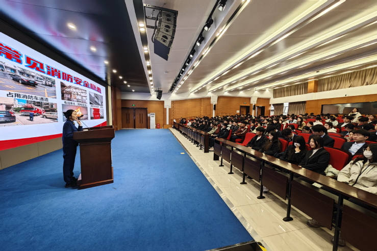 随后,一场以“全民参与、防治火灾”为主题的专题讲座在学术报告厅举行。讲座结合校园火灾典型案例,深入浅出地讲解火灾预防、初期火灾扑救、火场逃生自救等实用知识,引导师生树立“人人讲安全、事事为安全、时时想安全、处处要安全”的理念。