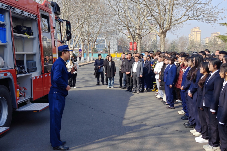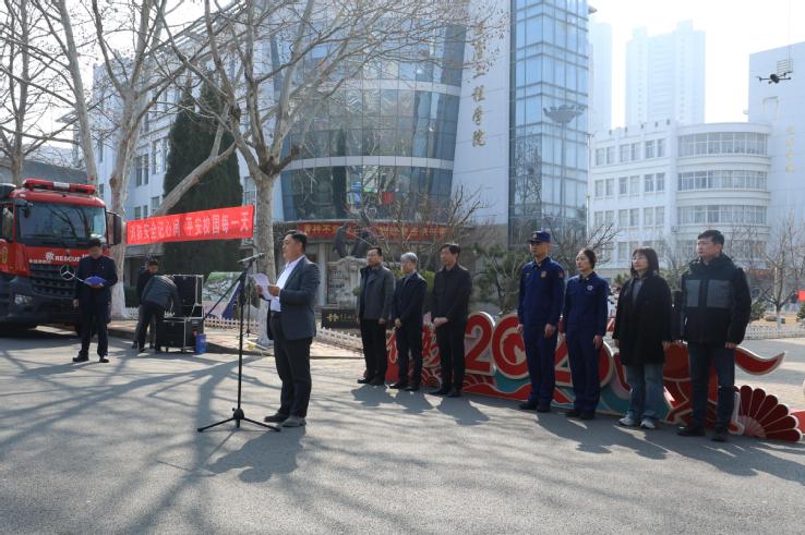 本网讯(安全保卫处)3月12日,学校联合青岛市李沧区消防救援大队举办“消防宣传进校园”活动。学校党委书记刁洪斌,党委副书记、校长韩西清等领导班子成员参加活动。