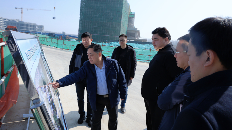 本网讯(基建处 姜怡名)3月13日,集团党委常委、副总经理刘岩一行莅临学校蓝谷校区项目现场,调研项目建设相关工作,实地察看校区施工进展,协调解决项目建设中存在的问题和困难。学校党委书记刁洪斌,山东省城乡发展集团党委书记、董事长王忠武,学校党委委员、副校长于宏刚陪同调研。