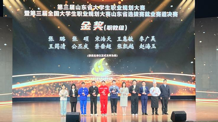 本网讯(招生就业办公室 刘卿文)3月16日,由山东省教育厅、山东省人力资源和社会保障厅联合主办的第三届全国大学生职业规划大赛山东省决赛圆满落幕。我校参赛选手凭借扎实的专业功底、清晰的职业规划和出色的现场表现,在激烈角逐中脱颖而出,一举斩获2金1银的优异成绩,实现金牌数量历史性突破,同时也是职教组就业赛道唯一一个获得2金的学校,创下学校在该赛事省级决赛中的最佳战绩。