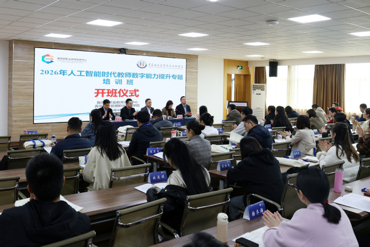 本网讯(继续教育学院 教务处)4月9日至12日,教育部职业教育发展中心2025-2026年度项目“人工智能时代教师数字能力提升培训班”在我校举办。来自全国21所职业院校的54名教师齐聚青岛,历经4天的系统化、专业化培训,顺利完成全部学习任务。学校党委书记刁洪斌以《“人工智能+”背景下的职教突围:从政策红利到范式革命》为题作开班第一讲。